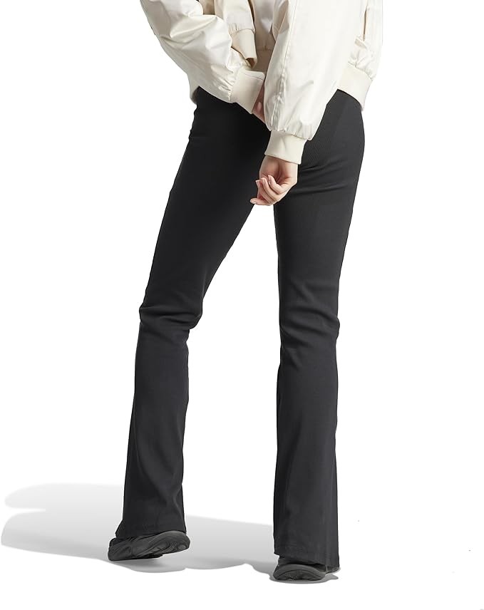 Soft, comfortable fabric perfect for casual or relaxed wear. Ribbed texture for a stylish look and added comfort. Flared legs for a vintage-inspired silhouette. Elastic waistband for comfort and stability. Regular fit.