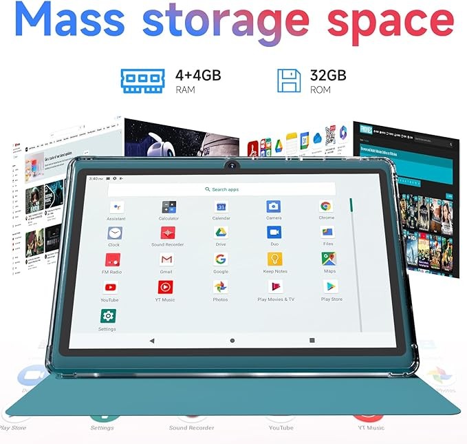 【Android 14 Tablet】This 7 inch tablet is equipped with the latest Android 14 system, equipped with a powerful quad-core processor, which is effective in multitasking management. Whether it's music, work, video, or entertainment, it runs perfectly.