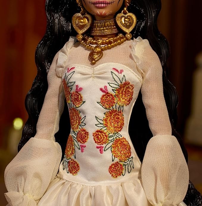 The Barbie Día De Muertos collection honors the festive holiday through a curated exploration of fashion that highlights the culture, rituals, and symbols often used during this day of remembrance.