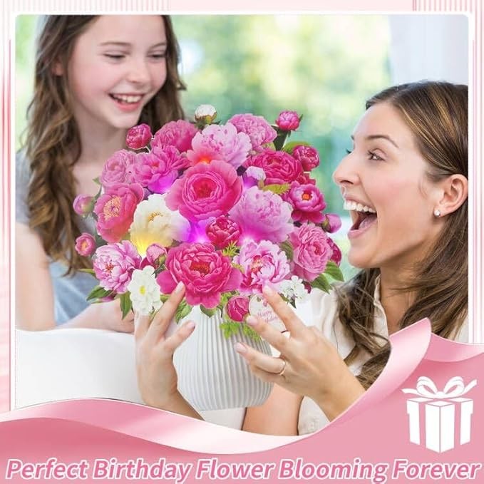 Birthday Cards with MUSIC & LIGHTS, Pop Up Happy Birthday Cards, Pink Penoy, 12 Inch Life Sized Forever Flower Bouquet Greeting Card Gifts for Women Mom Grandma