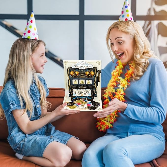 【Funny Birthday Pop Up Card】Enhance birthday celebration with this Casino Jackpot Happy Birthday Greeting Card's stunning 3D pop-up feature, showcasing a vibrant, casino-themed design that reveals a festive and colorful scene. This unique gift will be cherished by your blessed ones, creating a memorable keepsake.