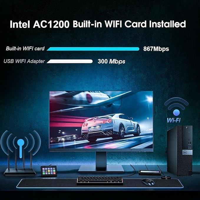 Built-in WIFI Card Installed - The Data Transfer Rate of this WIFI card reach 1200 Megabytes Per Second. With WIFI technology, you'll get faster speeds, improved security,so you can easily connect to the internet and other devices in your home or office on this computer.