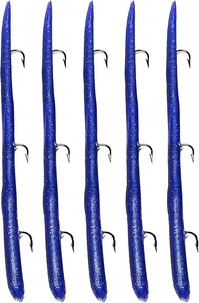 PRERIGGED WITH 3 HOOKS: We use hand tied internal rigs in every KILR worm. they come with 3 hooks to increase your hooksets. perfect for all skill levels.