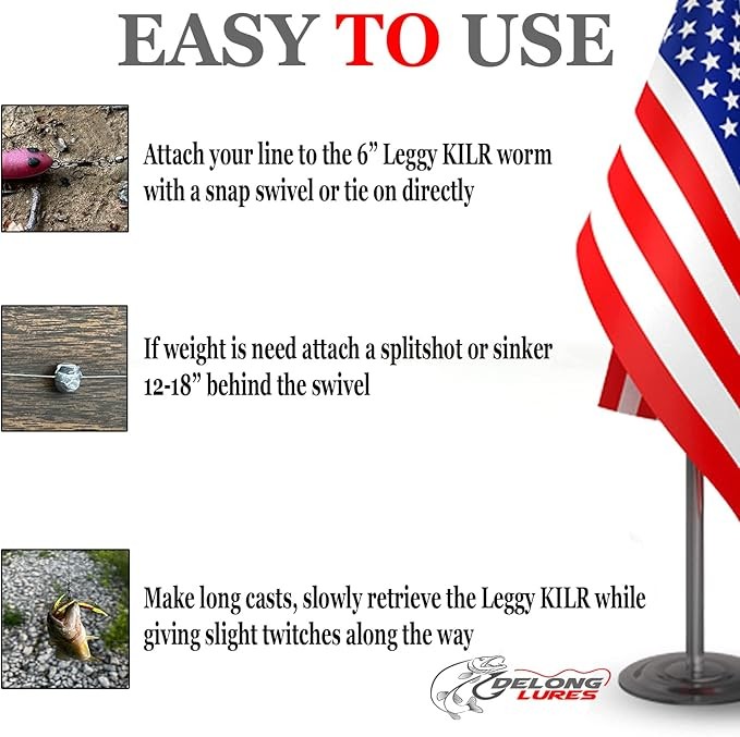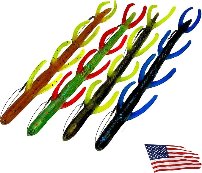 Delong Lures 6" Weedless Leggy KILR Fishing Worms for Bass, Pike, and Other Sport Fish, Soft Plastic for Bass Fishing, Pike Fishing Lures Baits Tackle Worms for Fishing