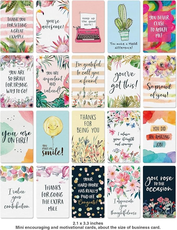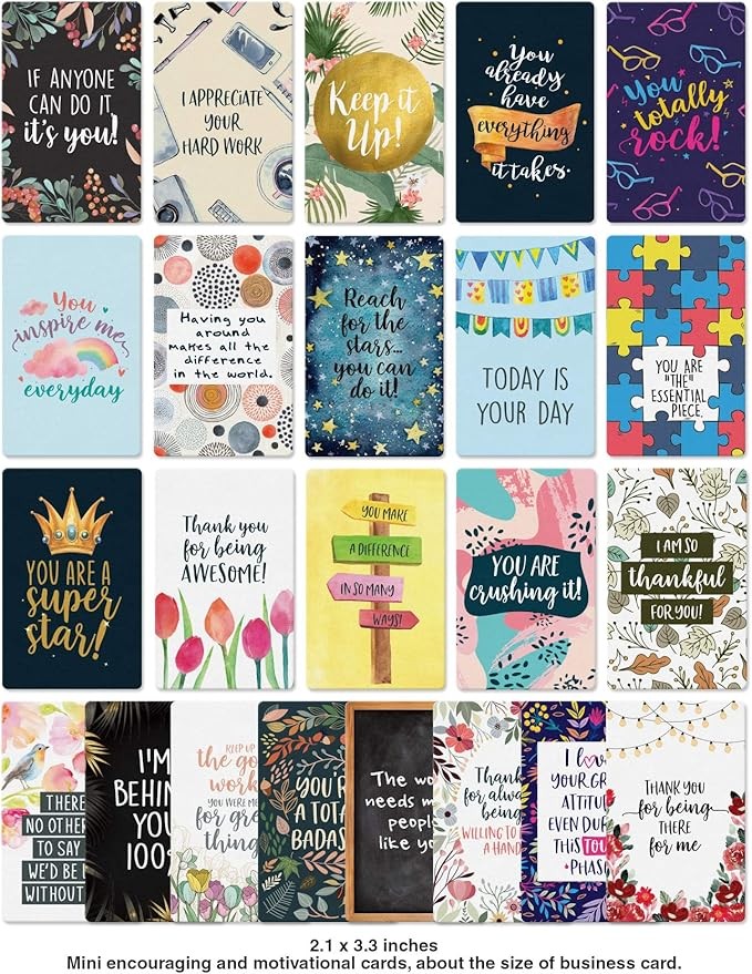 Versatile:Because they are about the size of a business card, our motivational cards are the perfect size to keep in your purse or wallet - great for encouraging yourself on the go or passing along to others when the opportunity arises. Other ways to use these kindness cards include: adding them to greeting cards and letters, to show employee and coworker appreciation, as kudos cards, gratitude cards, lunch box notes for kids and adults, floral card picks, in party favor bags.... The possibili