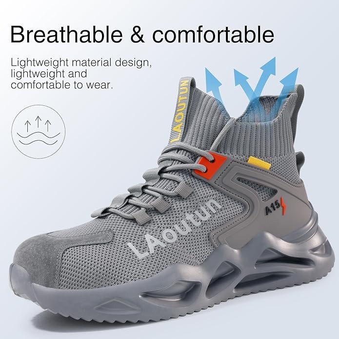 LAoutun Steel Toe Shoes for Men and Women Comfortable Lightweight Work Safety Shoes Puncture Proof Slip Resistant Indestructible Sneakers Construction Work Utility Sneakers