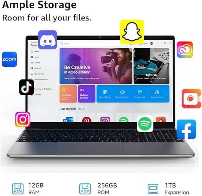【2025 New Upgraded to 12GB RAM & swift 512GB SSD】Substantial high-bandwidth RAM to smoothly run your games and photo- and video-editing applications, as well as multiple programs and browser tabs all at once. Provides massive storage space for huge files, so that you can store important digital data and work your way through it with ease. It gives you enormous space to save all of your files.