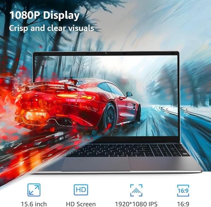 【15.6 FHD IPS Laptops】This 15.6 inch laptop computer features an innovative thin-bezel display that provides more usable onscreen space for immersive FHD viewing. It also enables a larger screen to fit into a smaller chassis, giving you a laptop with a more compact footprint. It delivers vivid and clear visuals, reducing eye strain and making it ideal for long periods of reading, working, or studying.
