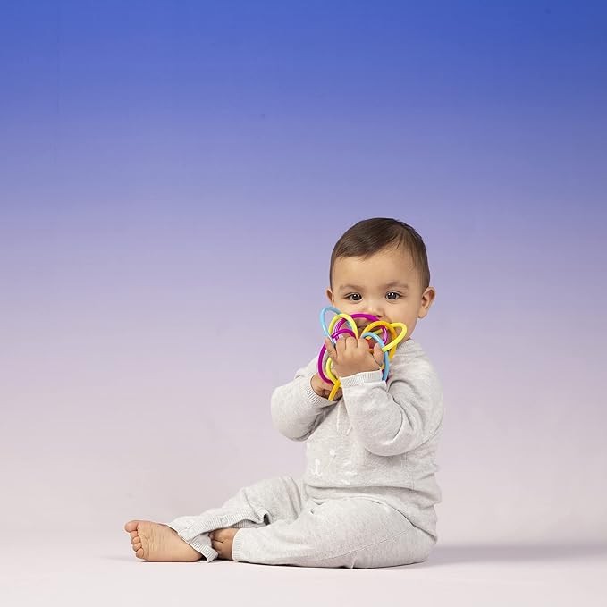 BABY TEETHING TOY MADE FOR LITTLE HANDS: The Winkel features a mesmerizing maze of soft, continuous BPA-free teething tubes, and can be refrigerated for additional soothing comfort - a perfect baby chew toy for tiny hands.