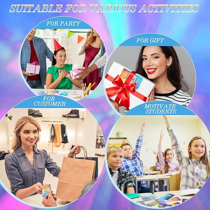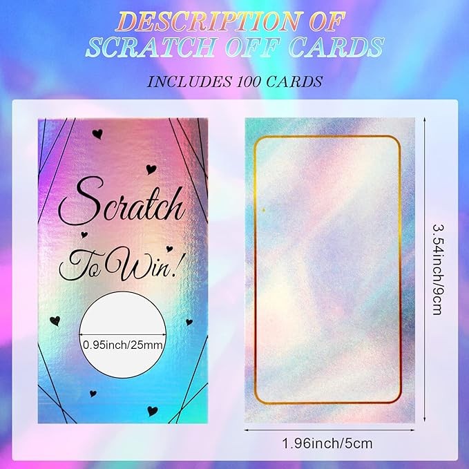 Package Contains: you will get 100 pieces of the scratch cards, come with 100 pieces square silver stickers, blank design on each card, you can print with words or proverbs that imply good wishes, expectations for recipients; Reminder: the color of this product is colorful laser, and the color will be different when viewed from different angles
