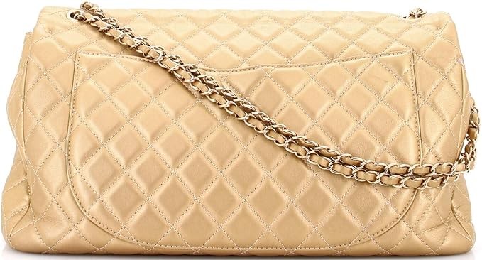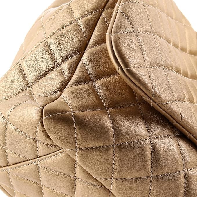 Pre-Loved XXL Travel Flap Bag Quilted Calfskin Small, Gold