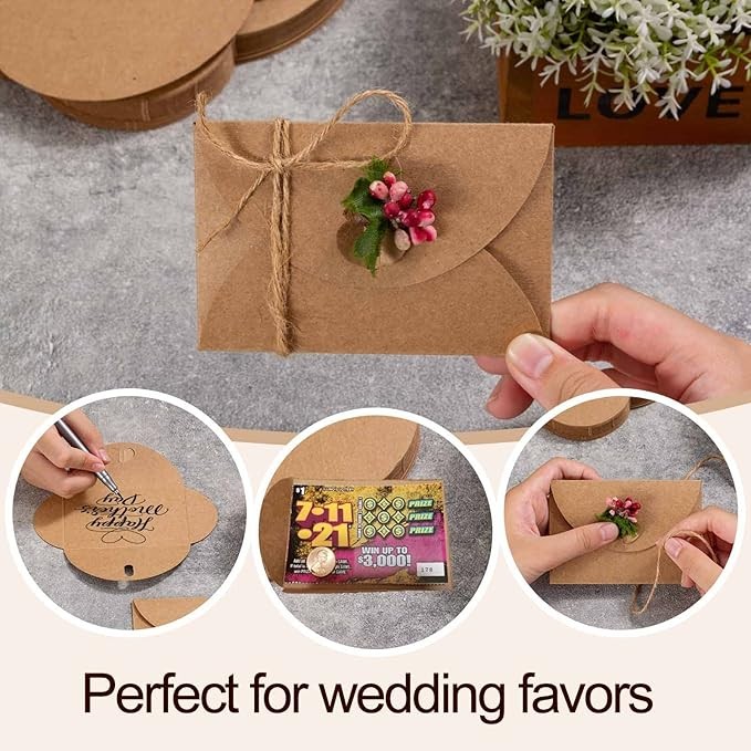 Primbeeks 100 Pcs Premium Gift Card Envelopes, 4 x 2.8 inch Gift Card Holders, Mini Seed Kraft Paper Cute Envelopes with Heart Clasp for Gift Cards, Weddings Favors, Party Favors