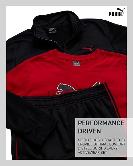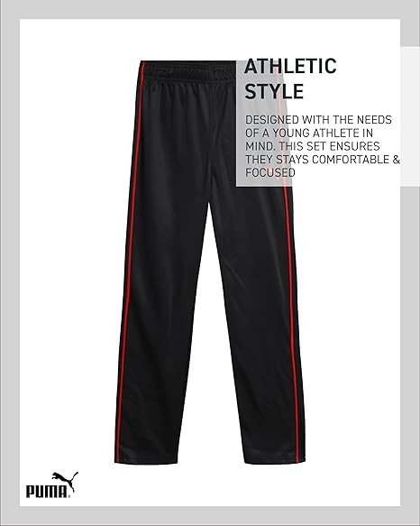 • Officially Licensed PUMA: 3 Piece Boys' Activewear Set - Tricot Short Sleeve Shirt, Zip Up Sweatshirt, Active Joggers Sweatpants; Inspired by the values that make an excellent athlete: be brave, be confident, be determined, be joyful, be Puma