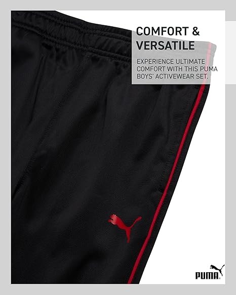 • Versatile Design: The PUMA Boys Pants Set features a versatile design that can be worn as a coordinated outfit or mixed and matched with other wardrobe pieces. The athletic t-shirt and zip-up jacket are great for layering, and the jogger pants provide a stylish, comfortable fit. This makes it a practical choice for various activities, from casual outings to sports.