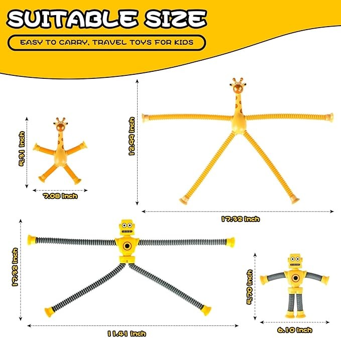[Road Trip Travel Activities Essentials] The telescopic suction cup robot toy can pop, stretch, twist, and wrap, helping to cultivate children's fine motor skills and creative thinking. Helping children relieve stress and calm down during the plane/car journey and restaurant, especially suitable for ADHD and autism