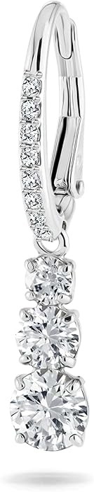 Swarovski Stilla Attract Trilogy Drop Pierced Earrings with White Crystals on a Rhodium Plated Setting with Hinged Closure