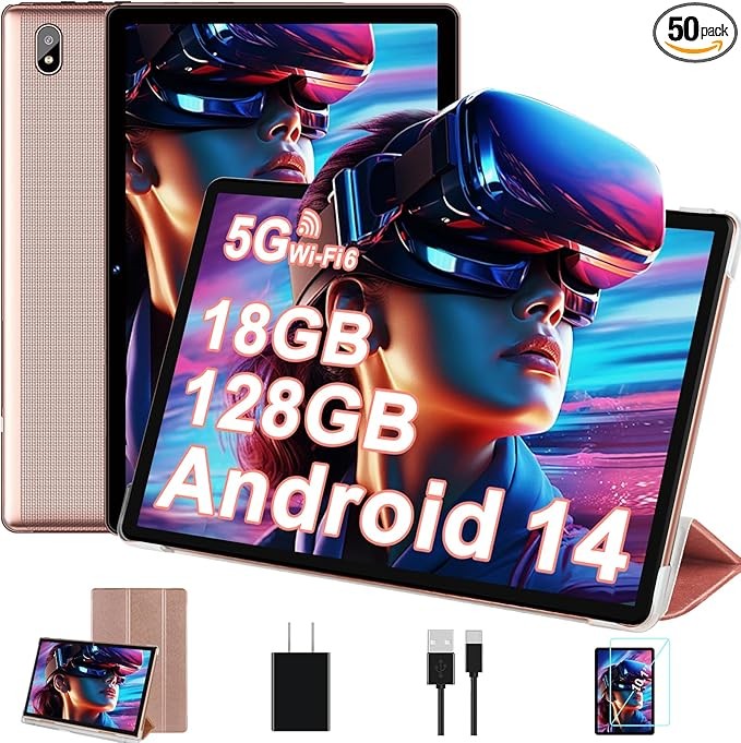 【18GB RAM + 128GB ROM + 1TB Expansion】Android 14 tablet has 16GB RAM (4GB physical + 14GB expandable). Whether you are playing a game or working on a task, the 10.1 tablet delivers a smooth experience. Equipped with 128GB ROM and MicroSD card slot (expandable to 1TB), you can store more of your favorite apps and content. (Not support add SIM card! !!)The 10 inch android tablet has a built-in 6000mAh battery up to 8 hours of usage, perfect for your daily commute, travel, and on-the-go entertainment needs.