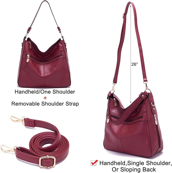 LARGE CAPACITY: Large hobo bag has 8 pockets: 2 front zipper pockets on the outside,2 main compartments,2 zipper pockets and 2 slot pockets.Many pockets keep things organized and it is roomier than you think.